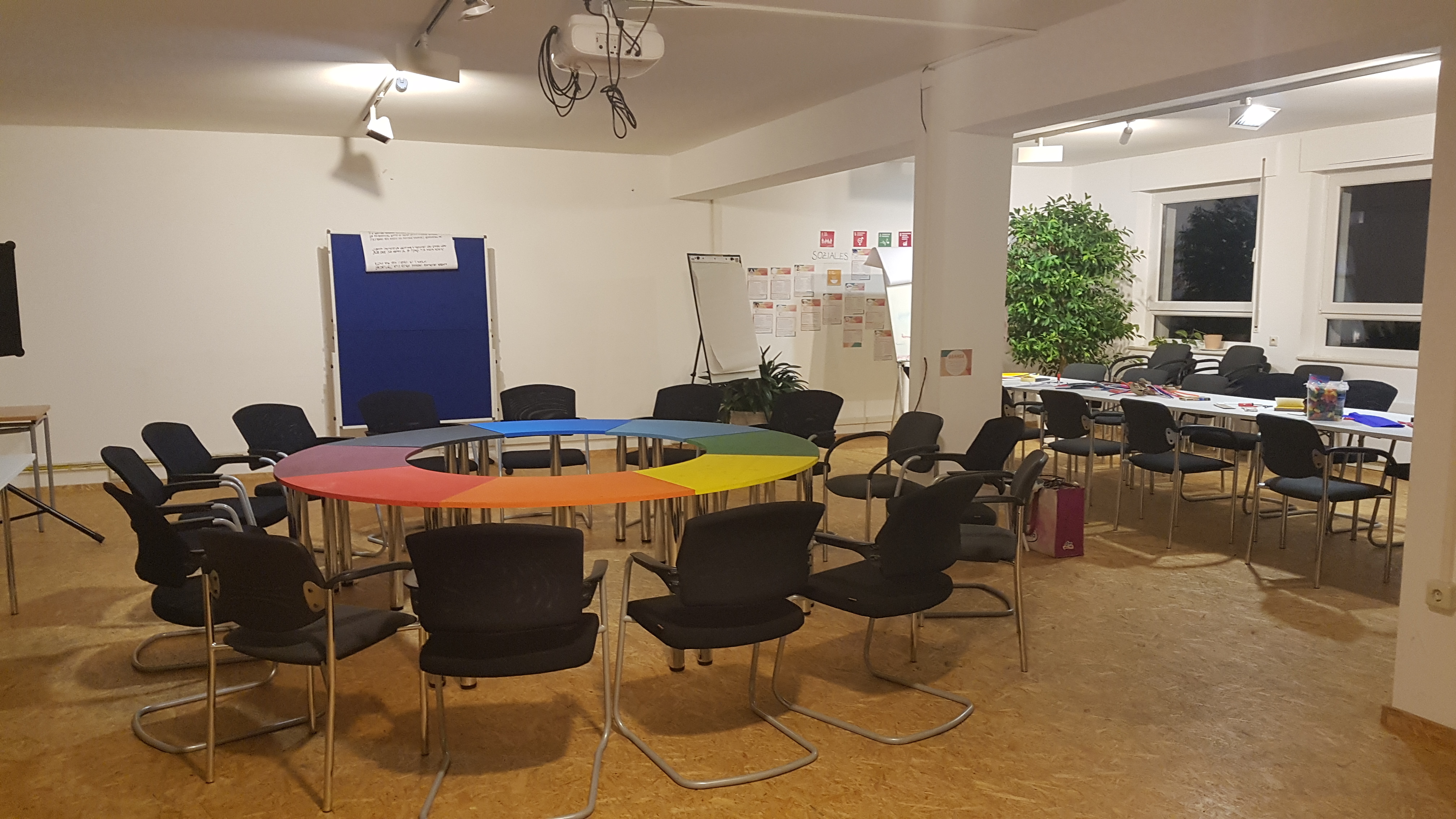 Hierzu trug auch ein einstimmender künstlerischer Impuls bei, der die Teilnehmenden mit allen Sinnen auf eine Reise vom Kopf über das Herz zu beiden Händen einlud – frei nach Beuys, einem der Impulsgeber des Runden Tisches („Jede/r ist ein/e Künstler/in“). Dabei wurde unter anderem die Vision eines alle Farbschattierungen einschließenden Regenbogens, dessen „Farben alle zusammen ein strahlendes Weiß ergeben“, von einer Teilnehmerin plastisch dargestellt.